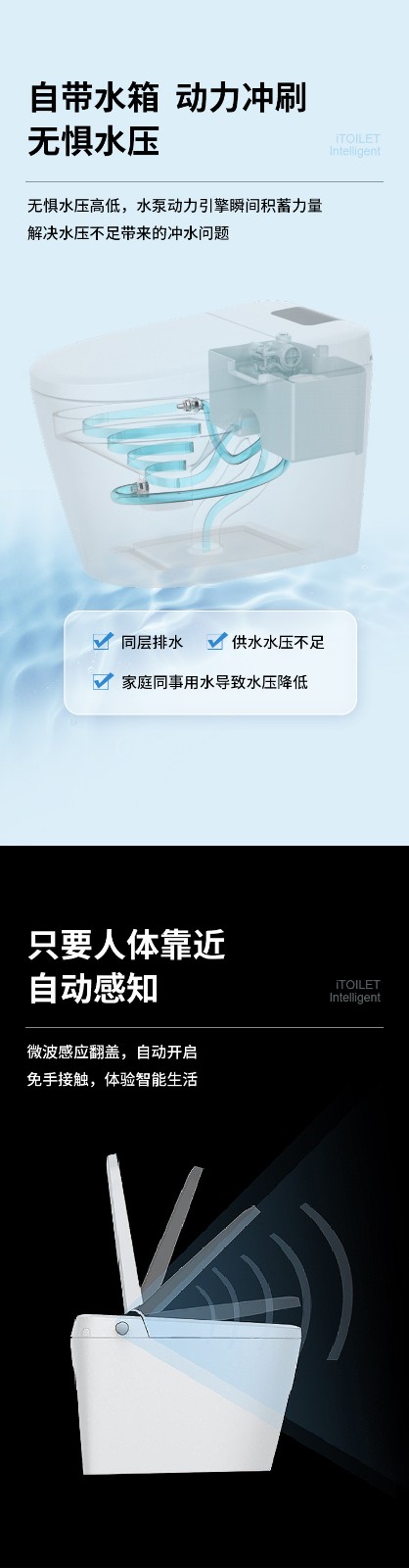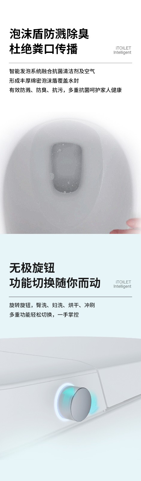 3、主要功能:AI語音控制(可選)、著座感應(yīng)、腳感翻蓋/翻圈/沖刷(可選)、停電(接USB)沖刷、暖風烘干、無線遙控、凈味除臭、